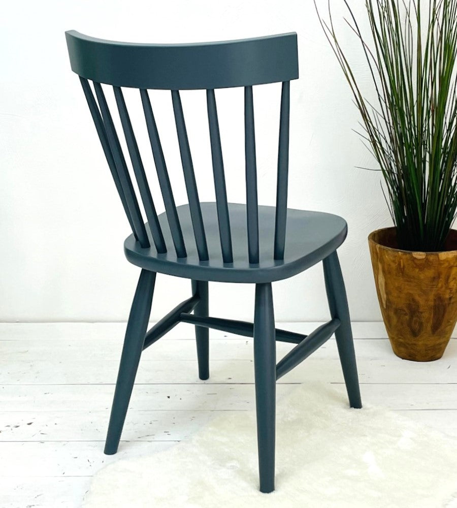 Our painted chairs are finished to the best standards. We can lightly distress the appearance, which adds character and makes each item unique. We finish with a natural wax which adds a soft sheen and makes your hand painted furniture beautiful and durable.